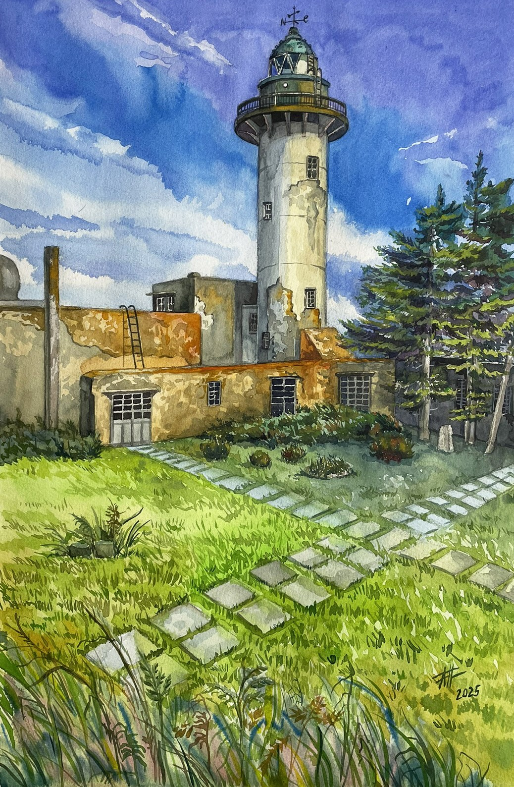 «Маяк Тонин на мысе Свободном». Акварель, 30х45 см., 2025
