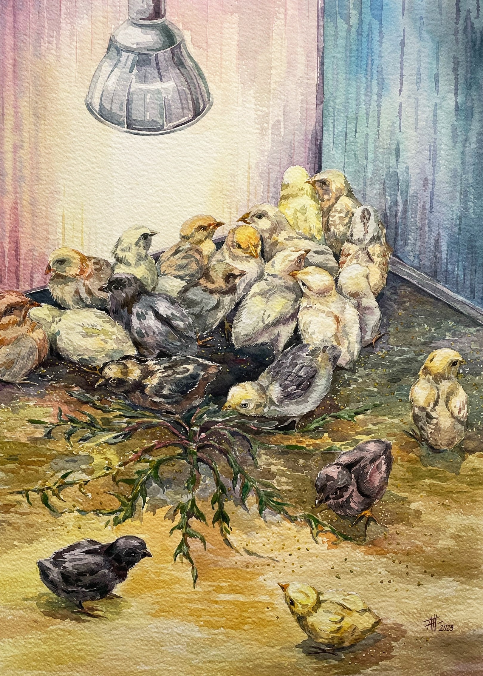 «Хозяйство. Куры». Акварель, 14х19 см., 2020